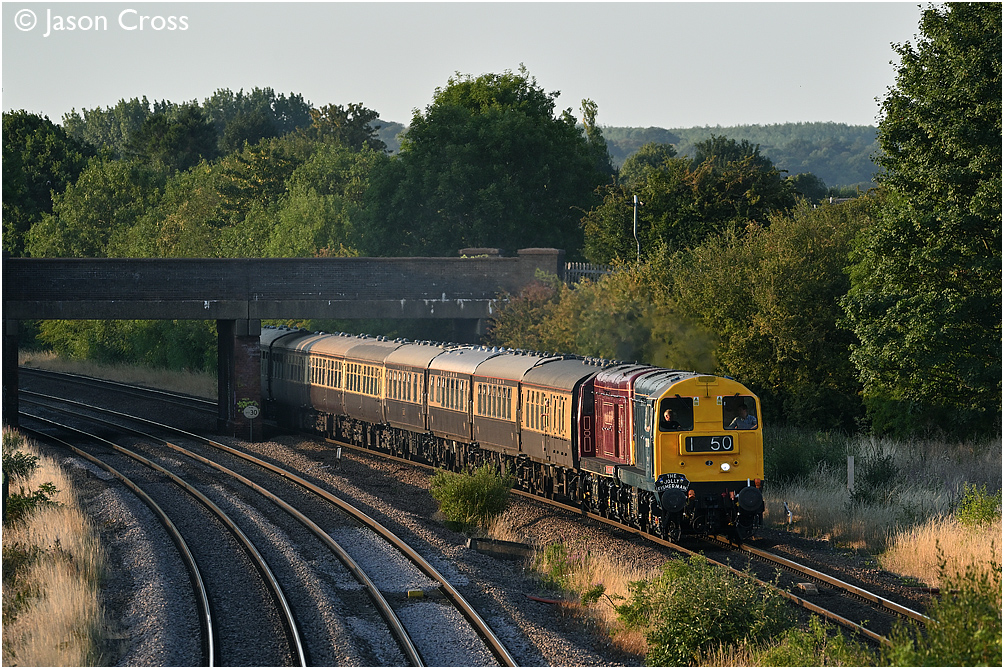 20189 and 20142 power through Thurmaston with a 1Z61 1631 Skegness to Tyseley Steam Trust railtour. Date: 12 August 2022 Manipulation Notes: None