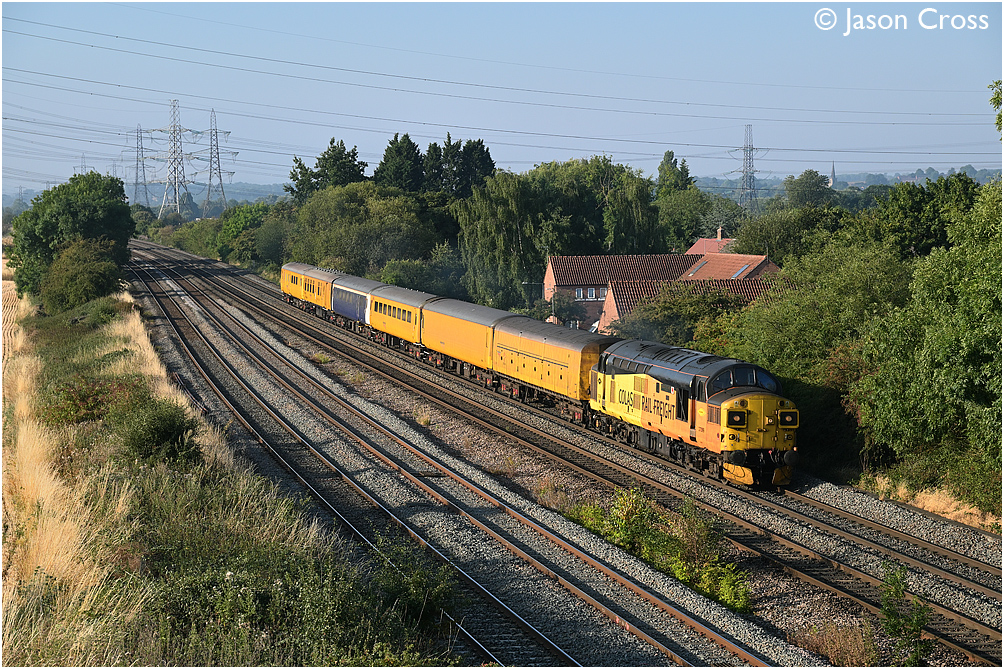 37099 passes Ratcliffe on Soar at the head of a 3Q26 2300 Hither Green Depot to Derby RTC test train. Date: 13 August 2022 Manipulation Notes: None