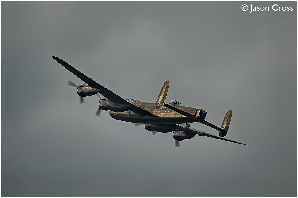 RAF Avro Lancaster PA474 turns away at the end of its display. The Victory Show 2022, Cosby, Leicestershire. Date: 3 September 2022 Manipulation Notes: None