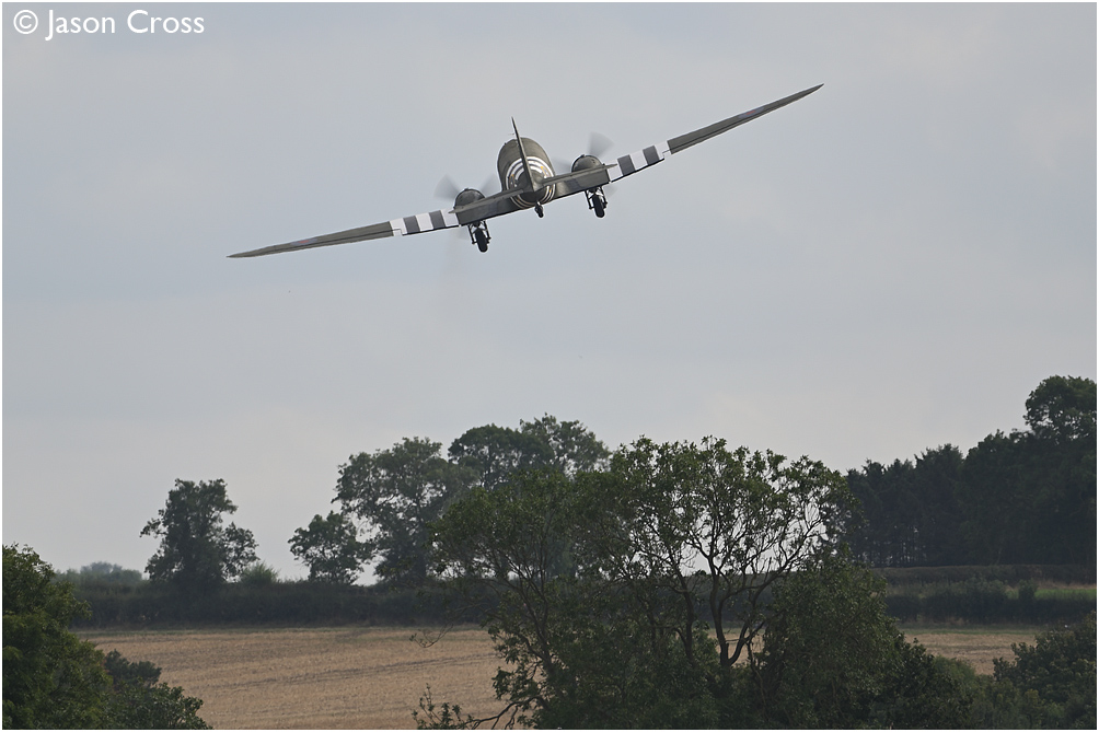 Ex-RAF Douglas C47 KP220 takes off from runway 19. The Victory Show 2022, Cosby, Leicestershire. Date: 4 September 2022 Manipulation Notes: None