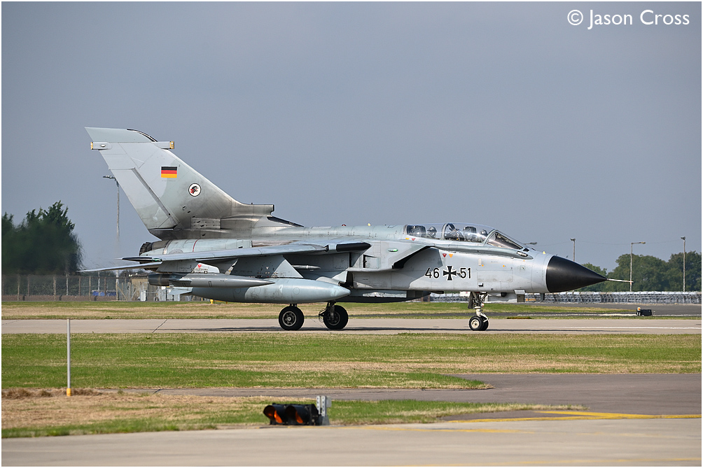 Panavia Tornado 46+51 of the German Air Force (Luftwaffe) exits the runway after landing at RAF Waddington. Exercise Cobra Warrior. Date: 14 September 2022 Manipulation Notes: None