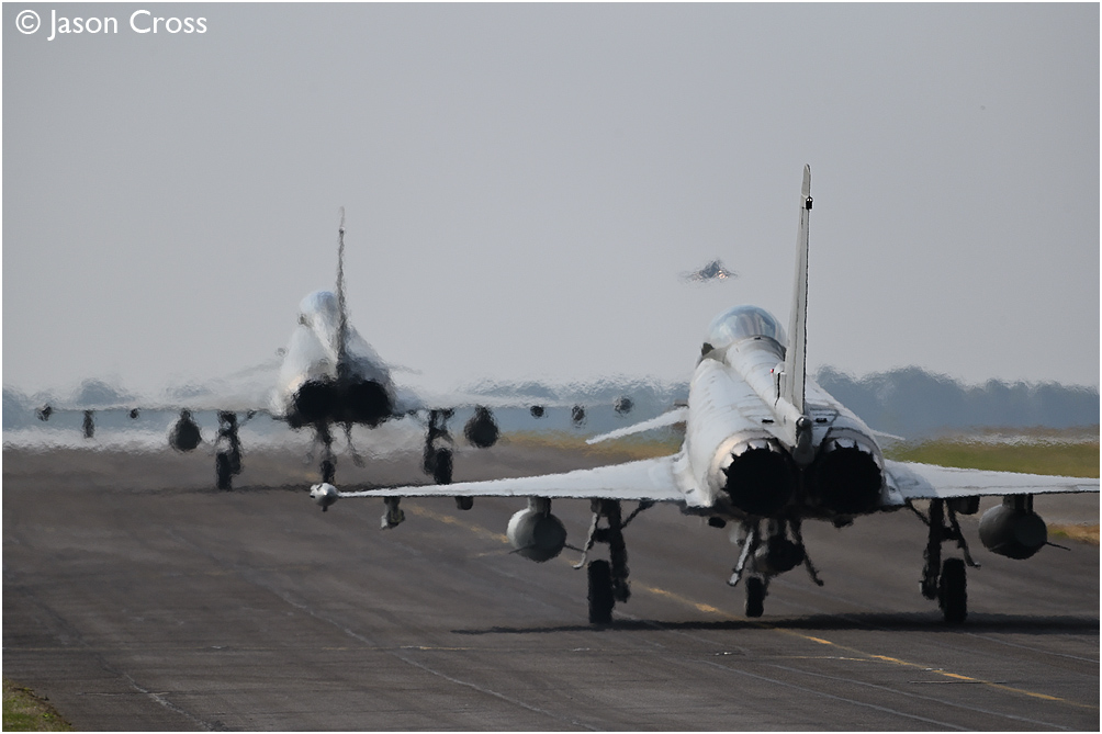 another Italian Typhoon can be seen on final approach through the heat haze.