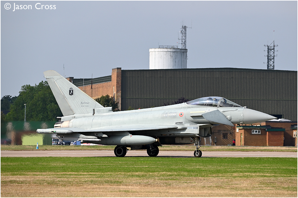 Typhoon MM7329 of the Italian Air Force (Aeronautica Militare) after landing on runway 02 at RAF Waddington. Exercise Cobra Warrior. Date: 14 September 2022 Manipulation Notes: None