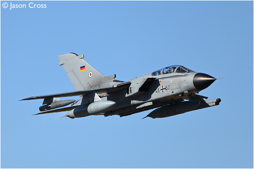 Panavia Tornado 46+50 of the German Air Force (Luftwaffe) taking off from runway 02 at RAF Waddington. Exercise Cobra Warrior. Date: 16 September 2022 Manipulation Notes: None
