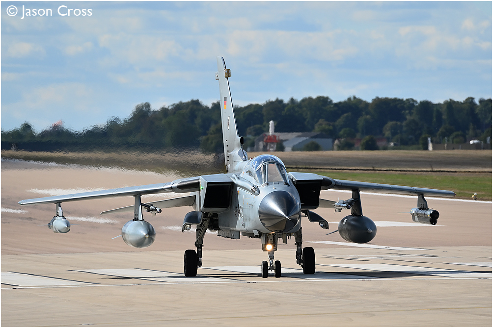 Panavia Tornado 46+32 of the German Air Force (Luftwaffe) taxies down the runway after landing at RAF Waddington. Exercise Cobra Warrior. Date: 16 September 2022 Manipulation Notes: None