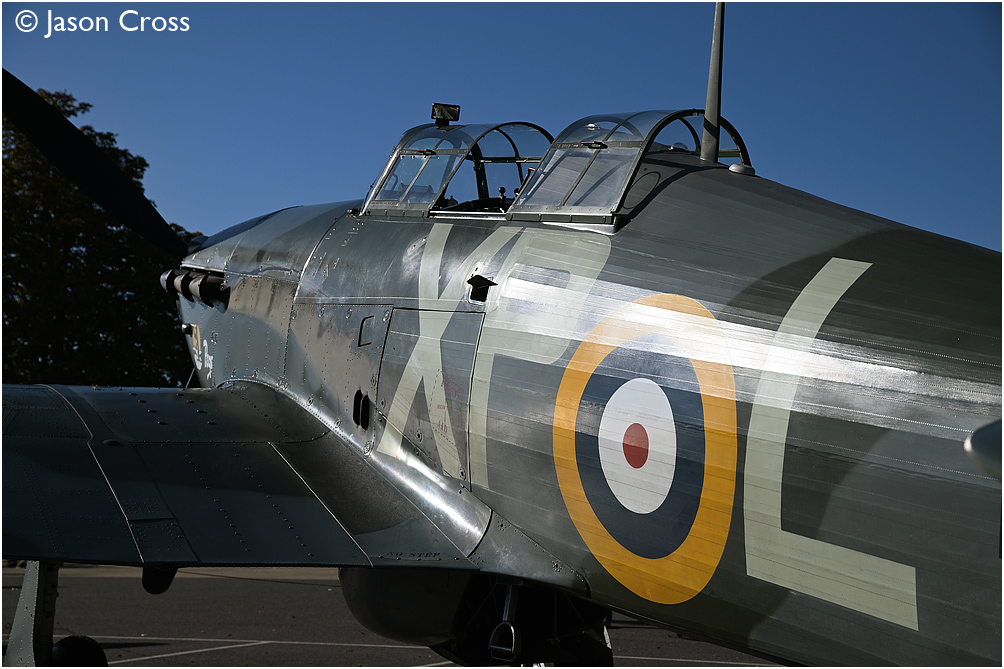 Hawker Hurricane MkIIb BE505 on display at the Imperial War Museum, Duxford. Date: 8 October 2022 Manipulation Notes: None