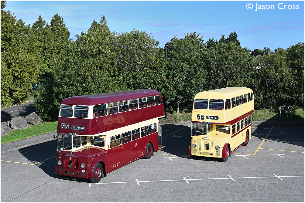 numbers 164 and 163 posing in the Space Centre car park, Leicester.
