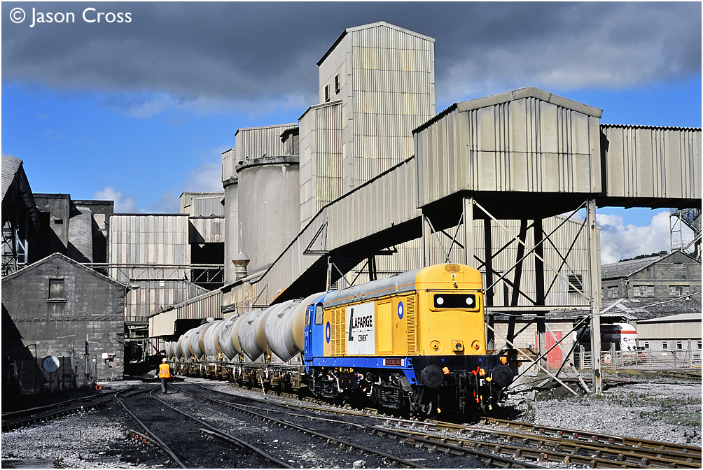 20168 draws a rake of cement tanks through the loader at Hope Cement Works. Taken during an EMRPS official visit / photo event. Date: 16 September 2005 Manipulation Notes: None
