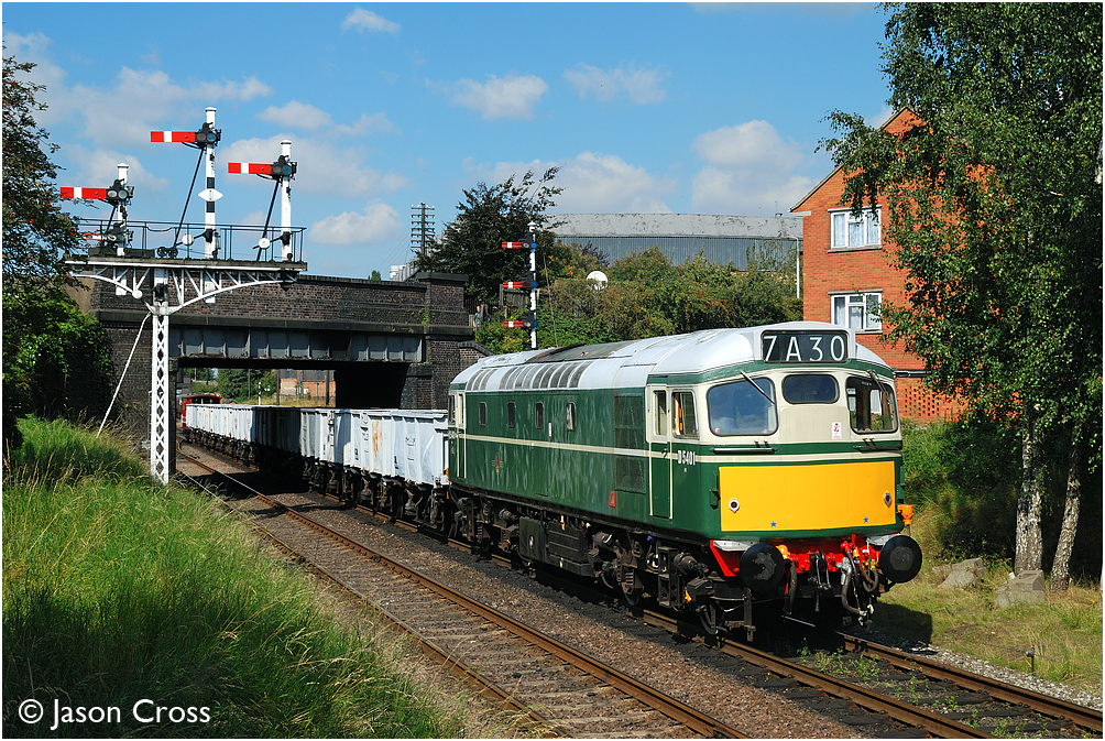 D5401 at Beeches Road in Loughborough with a rake of 16 ton mineral wagons in tow. EMRPS photo charter. Date: 4 September 2007 Manipulation Notes: None