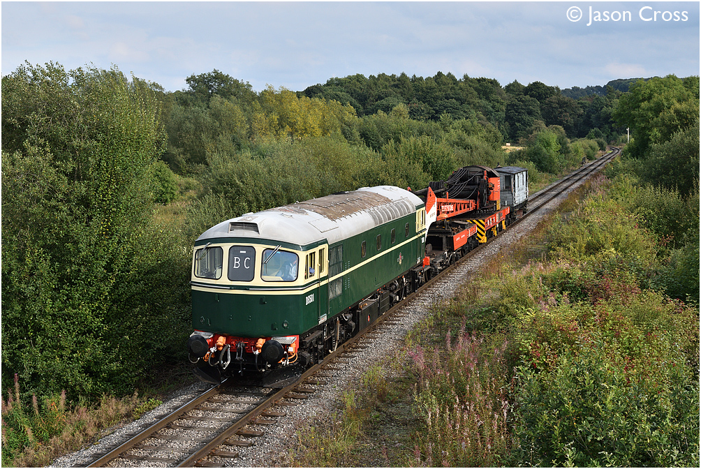 D6501 at Jubilee Wood with a breakdown train. EMRPS photo charter. Date: 4 September 2017 Manipulation Notes: None Camera mounted on a tall pole and remotely fired