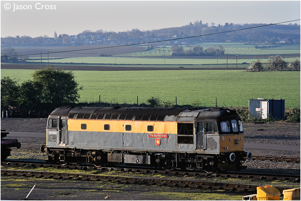 33202 'The Burma Star' stabled in the yard at Hoo Junction. Date: 4 April 1997 Manipulation Notes: None