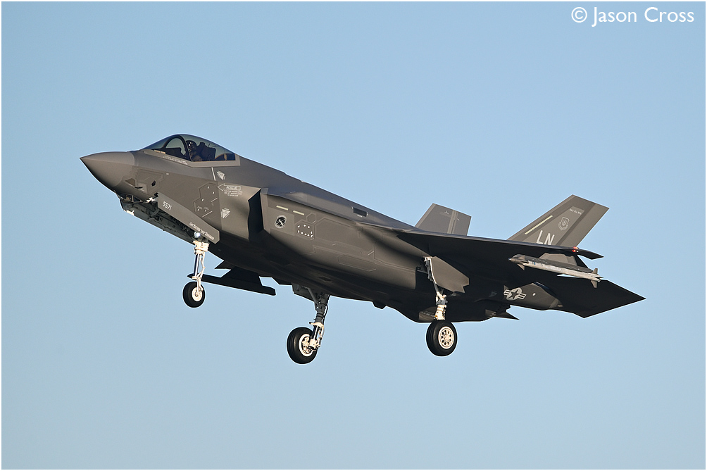 USAF F35A 20-5571 on final approach to runway 24. RAF Lakenheath. Date: 15 December 2022 Manipulation Notes: None