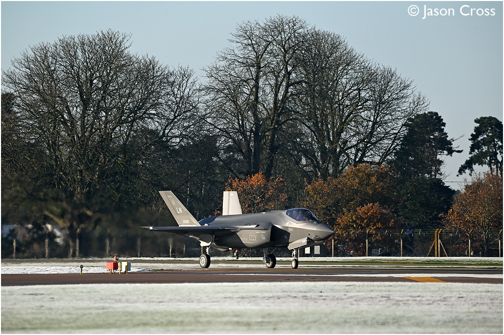 USAF F35A 20-5580 taxiing to runway 24. RAF Lakenheath. Date: 15 December 2022 Manipulation Notes: None