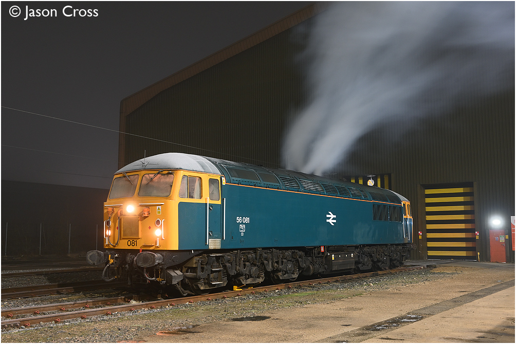 56081 at Asfordby Test Centre (Melton RIDC) all fired up and almost ready to depart on an ice patrol to Plumtree. Date: 17 January 2023 Manipulation Notes: None