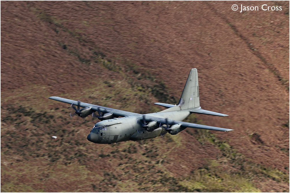 Royal Air Force Lockheed C130J Hercules ZH889 flying under callsign ZORRO43 from RAF Brize Norton at Bwlch in the Mach Loop.