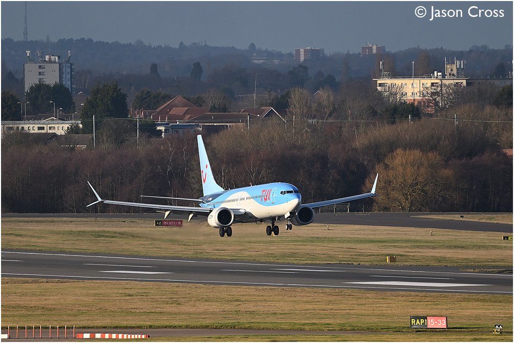 TUI Boeing 737 MAX G-TUMG arriving with a flight from Bristol. Birmingham Airport. Date: 5 February 2023 Manipulation Notes: None