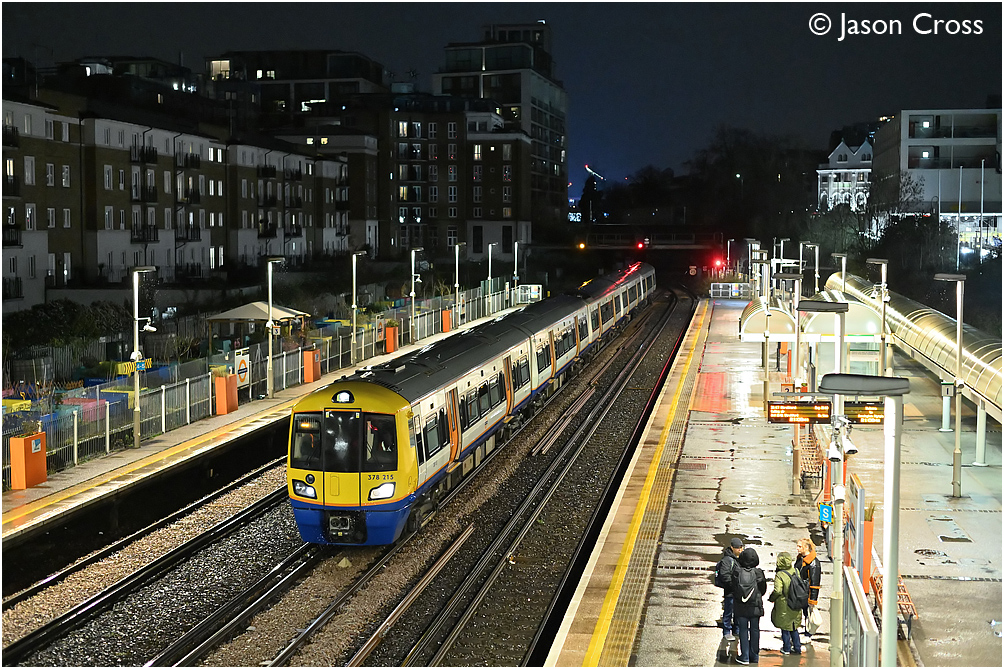 378215 passing through Kensington Olympia with 5M18 2100 Clapham Junction to Wembley C Sidings ECS. Date: 15 March 2023 Manipulation Notes: None
