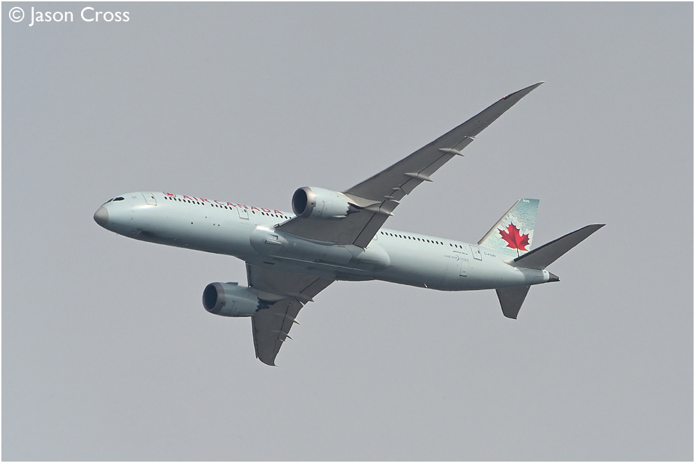 Air Canada Boeing 787 C-FGEI turns onto final approach to Heathrow with a flight from Calgary. Photo taken from Wimbledon. Date: 5 April 2023 Manipulation Notes: None