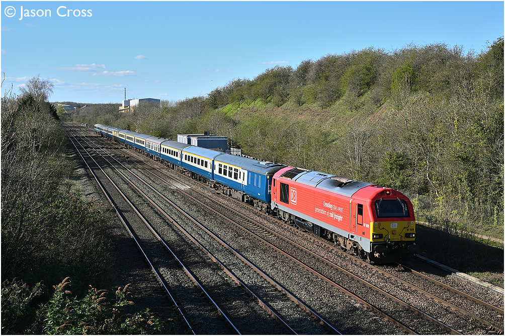 67028 passes Sileby with a 5Z22 1557 Burton Wetmore Sidings to Wembley Yard ECS. Date: 7 April 2023 Manipulation Notes: None
