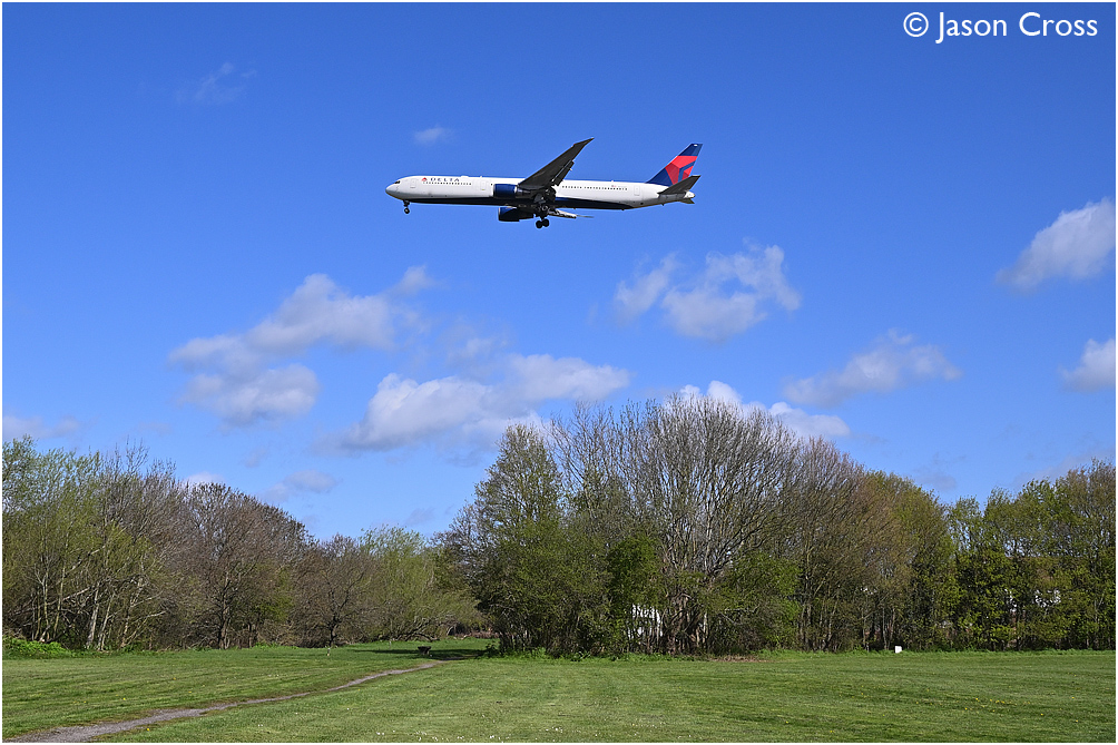 Delta Airlines Boeing 767, N385MH. Flight DAL32, 2145 Atlanta to London Heathrow. London Heathrow Airport approach to runway 27R. Date: 13 April 2023 Manipulation Notes: None