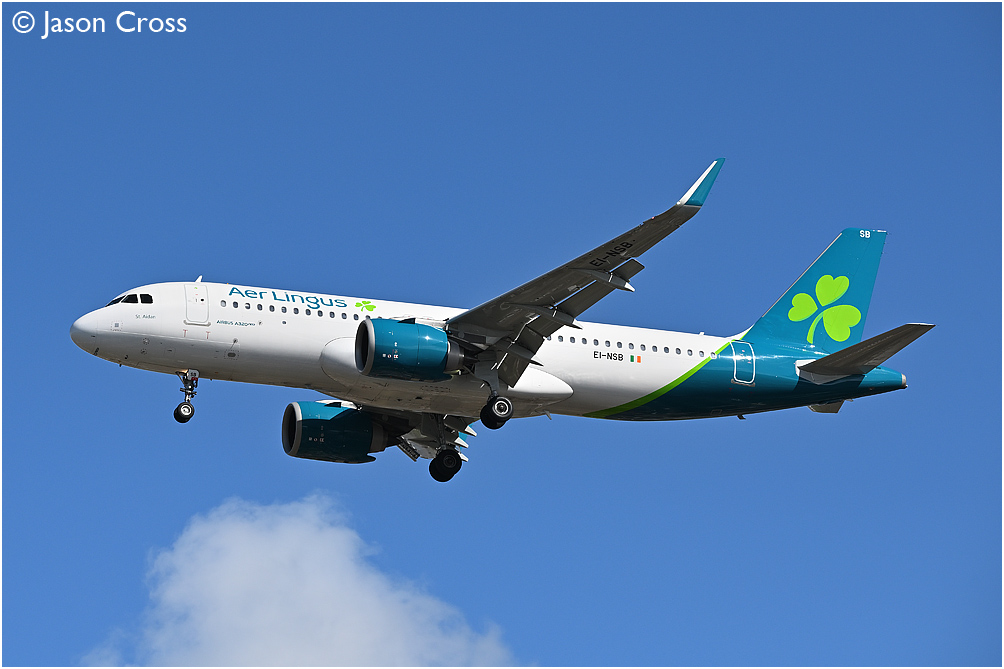 Aer Lingus Airbus A320 EI-NSB. Flight EIN158, 0950 Dublin to London Heathrow. London Heathrow Airport approach to runway 27R. Date: 13 April 2023 Manipulation Notes: None