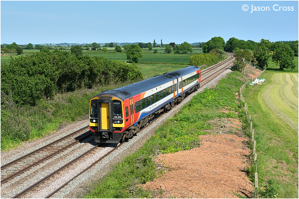158858 approaches Bottesford with the 1R64 1347 Norwich to Liverpool Lime Street. Date: 4 June 2023 Manipulation Notes: None Camera mounted on a tall pole and remotely fired