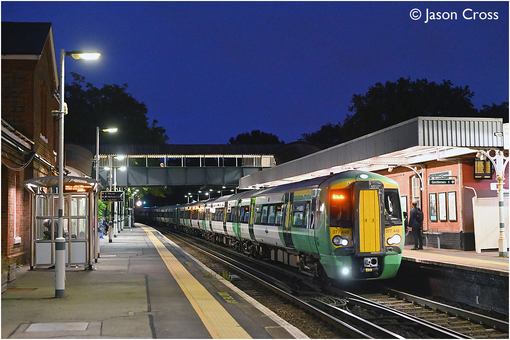 377448 arrives at Wandsworth Common at the head of the 2B25 1938 Epsom Downs to London Victoria. Date: 31 August 2023 Manipulation Notes: None