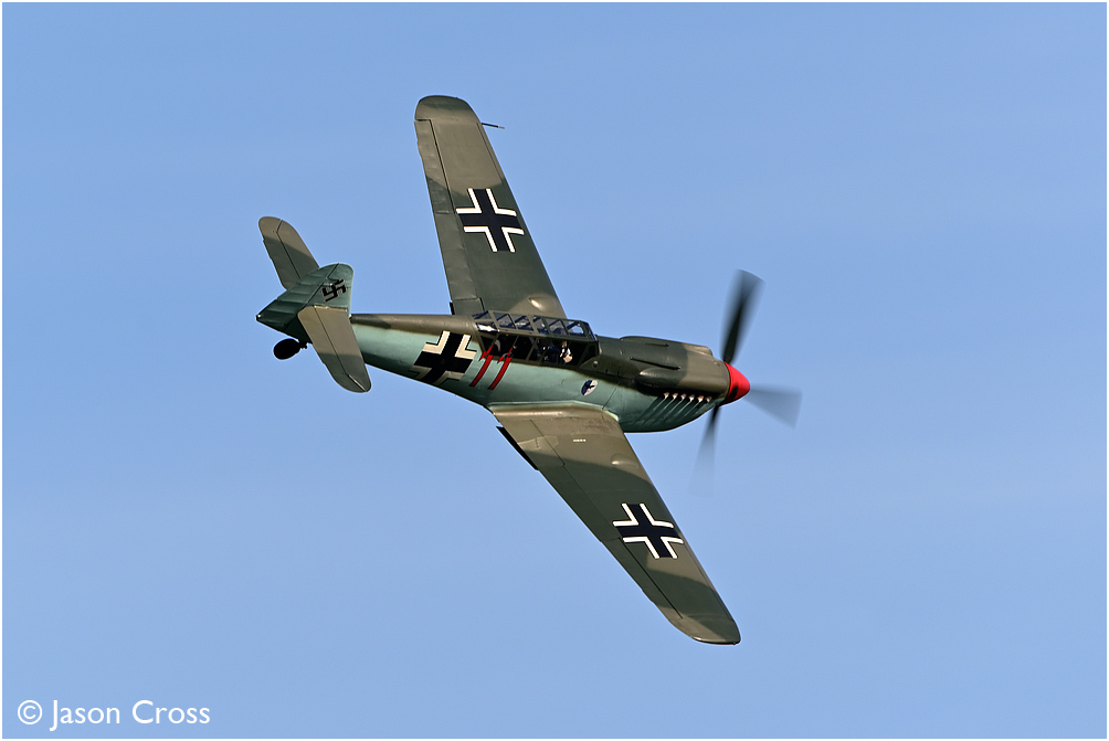 Hispano HA.1112-M4L Buchon G-AWHC (disguised as Messerschmitt Bf109 'Red 11'). The Victory Show 2023, Cosby. Date: 2 September 2023 Manipulation Notes: None