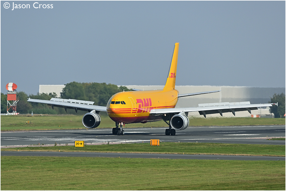 DHL Airbus A300 D-AEAH at East Midlands Airport shortly after touching down with a cargo flight from Brussels. Date: 9 September 2023 Manipulation Notes: None