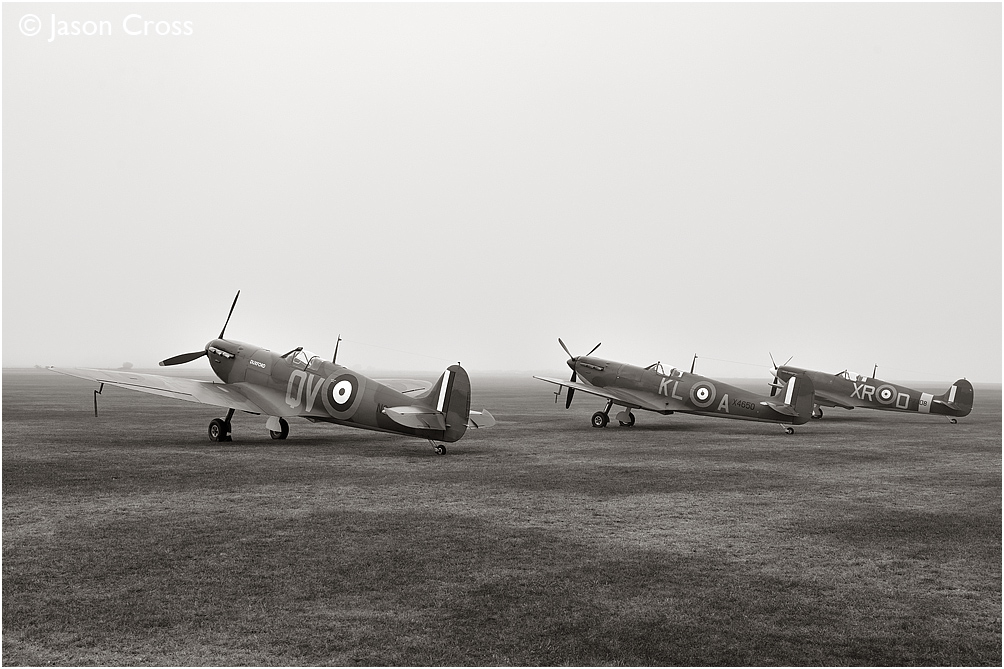A line up of Mk1 Spitfires, N3200, X4650 and AR213. Imperial War Museum Duxford, Battle of Britain Airshow 2023. Date: 16 September 2023 Manipulation Notes: None
