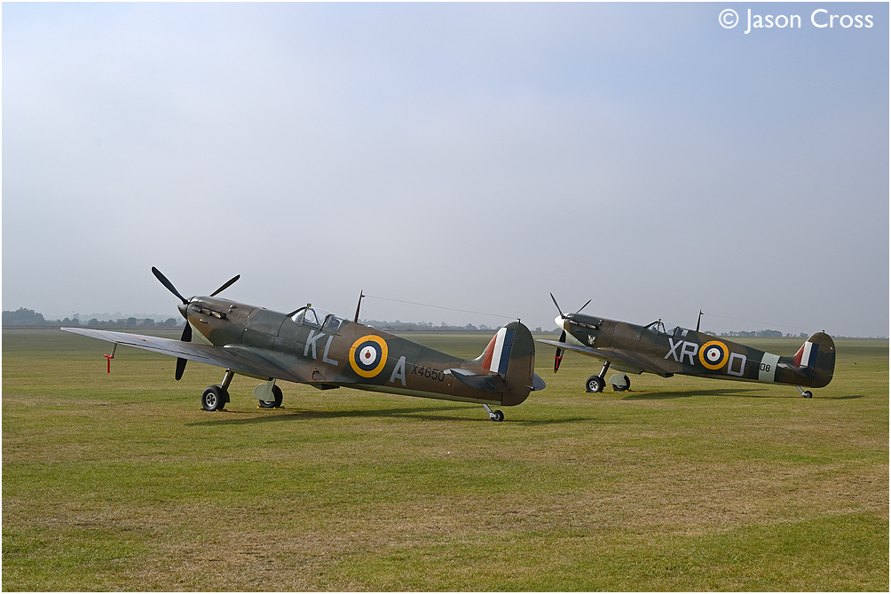 On the flight line, Spitfire Mk1s X4650 and AR213. Imperial War Museum Duxford, Battle of Britain Airshow 2023. Date: 16 September 2023 Manipulation Notes: None
