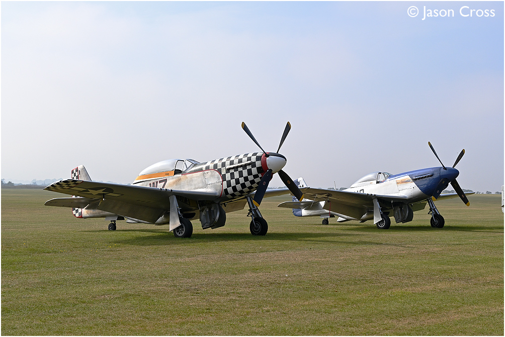P51D Mustangs 44-84847 'Contrary Mary' and 44-72216 'Miss Helen'. Imperial War Museum Duxford, Battle of Britain Airshow 2023. Date: 16 September 2023 Manipulation Notes: None