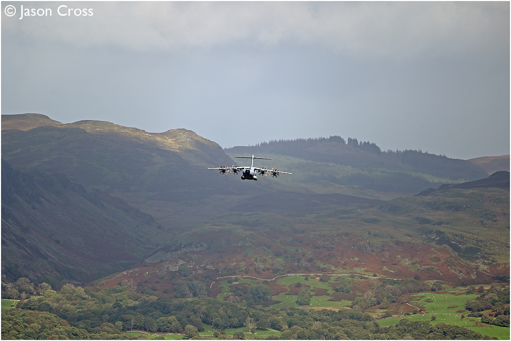 Air Force A400M Atlas ZM404 entering the Machynlleth Loop from the Bala