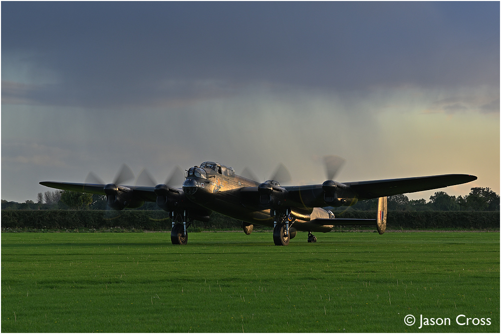 Avro Lancaster B MkVII NX611 'Just Jane' on a taxi run at the Lincolnshire Aviation Heritage Centre, East Kirkby. Timeline Events photo shoot. Date: 14 October 2023 Manipulation Notes: None