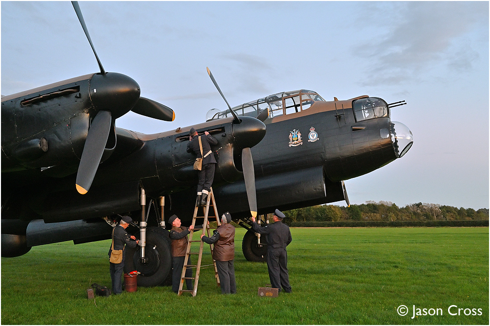 Sunset at East Kirkby and Avro Lancaster B MkVII NX611 'Just Jane' prepares to go out on a sortie. Timeline Events photo shoot. Date: 14 October 2023 Manipulation Notes: None