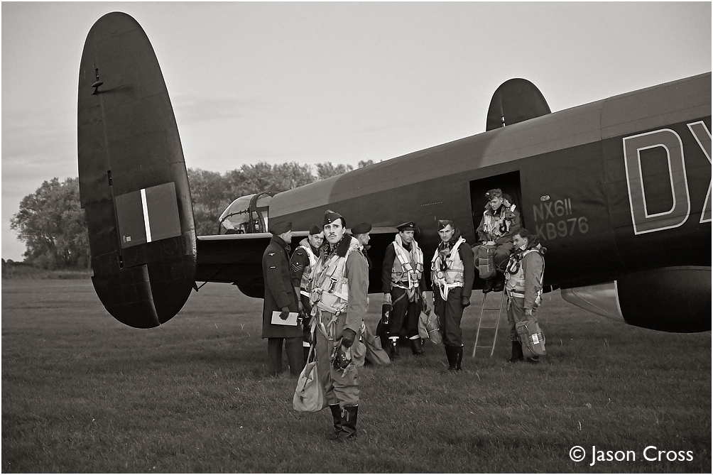 Sunset at East Kirkby and the crew arrive and pause for thoughts before taking Avro Lancaster NX611 'Just Jane' out on a sortie. Timeline Events photo shoot. Date: 14 October 2023 Manipulation Notes: None