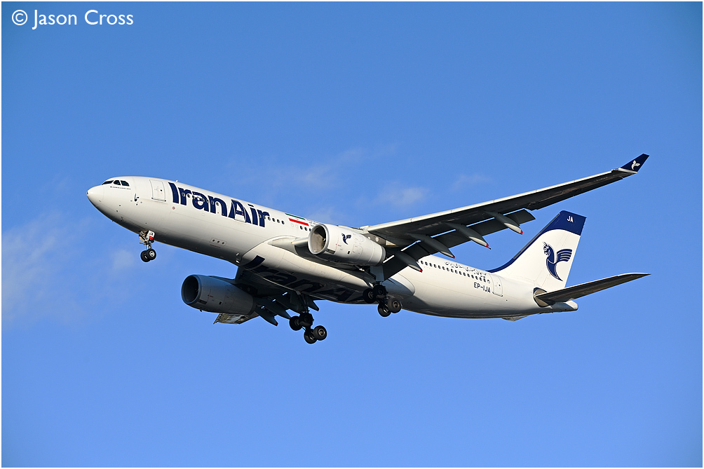 Iran Air Airbus A330 EP-IJA on approach to Heathrow's runway 27R with flight IRA711 from Tehran. Date: 22 October 2023 Manipulation Notes: None
