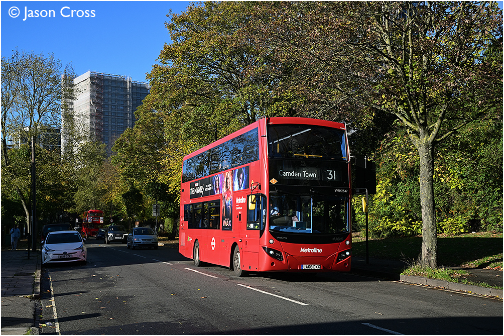 VMH2547 on Adelaide Road in Primrose Hill with a White City to Camden Town number 31 service. Date: 5 November 2023 Manipulation Notes: None