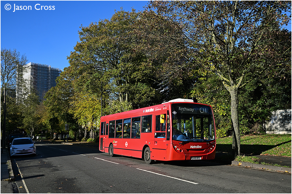 DE1133 on Adelaide Road in Primrose Hill with a Brent Cross to Archway C11 service. Date: 5 November 2023 Manipulation Notes: None