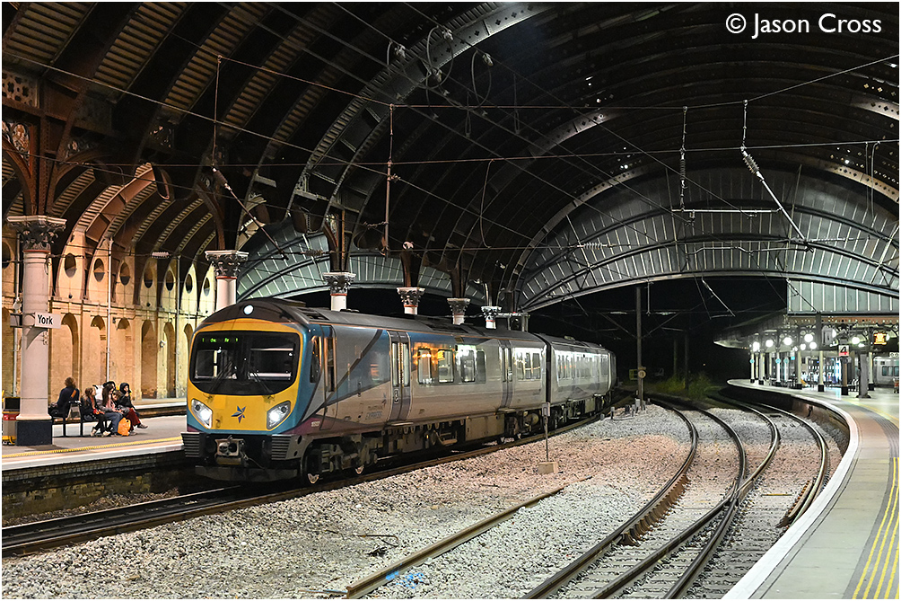 185122 (and 185103 out of sight) at York with the 1P80 1551 Saltburn to Manchester Airport service. Date: 25 November 2023 Manipulation Notes: None