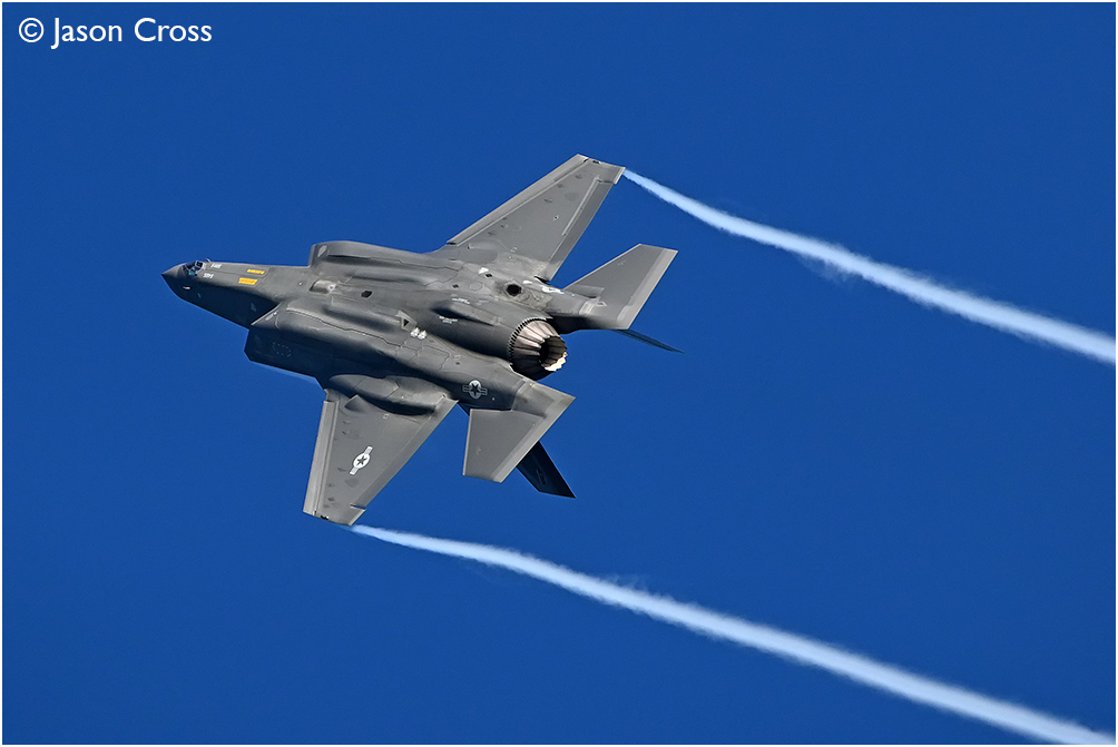 USAF F35A 20-5684 banking away after performing a low approach at RAF Lakenheath. Date: 8 December 2023 Manipulation Notes: None