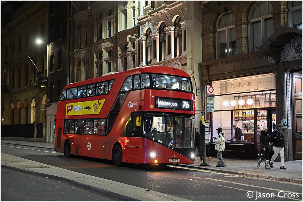 LT891 on Fleet Street in London with a Tottenham Hale to Waterloo 76 service. Date: 17 December 2023 Manipulation Notes: None
