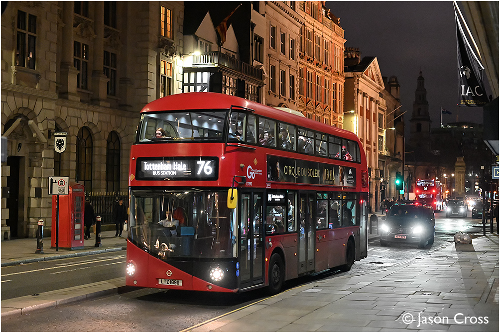 LT890 on Fleet Street in London with a Waterloo to Tottenham Hale service. Date: 17 December 2023 Manipulation Notes: None