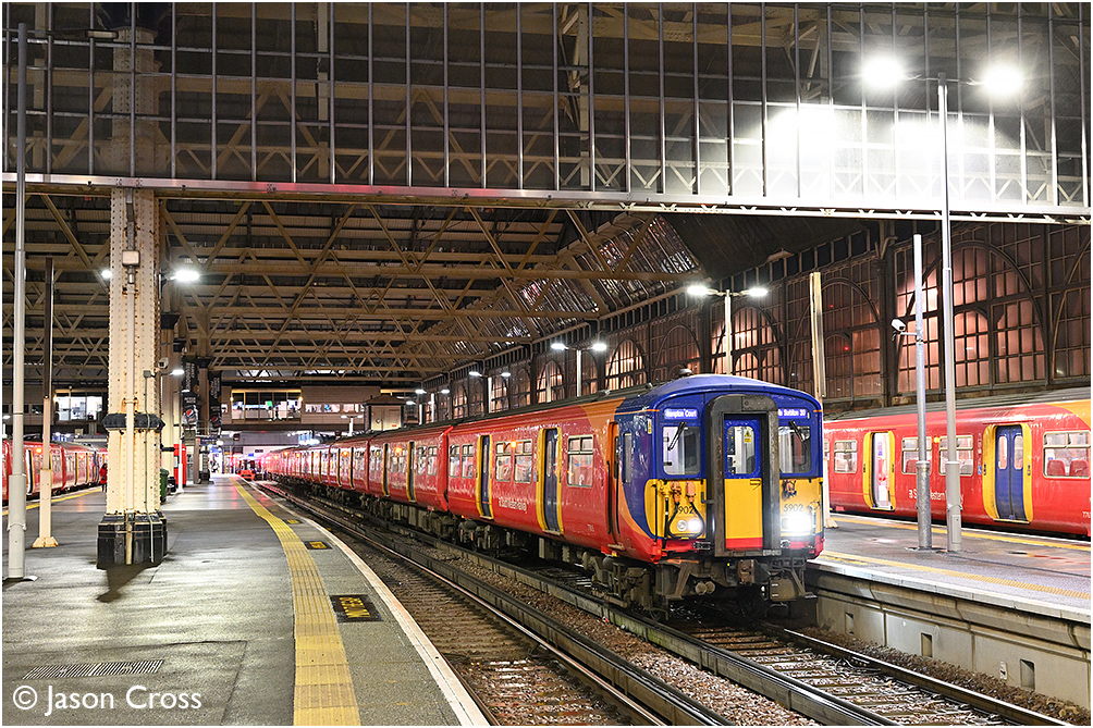 5902 and 5717 get ready to depart from London Waterloo's platform 2 with the 2J49 1706 to Hampton Court. Date: 30 December 2023 Manipulation Notes: None