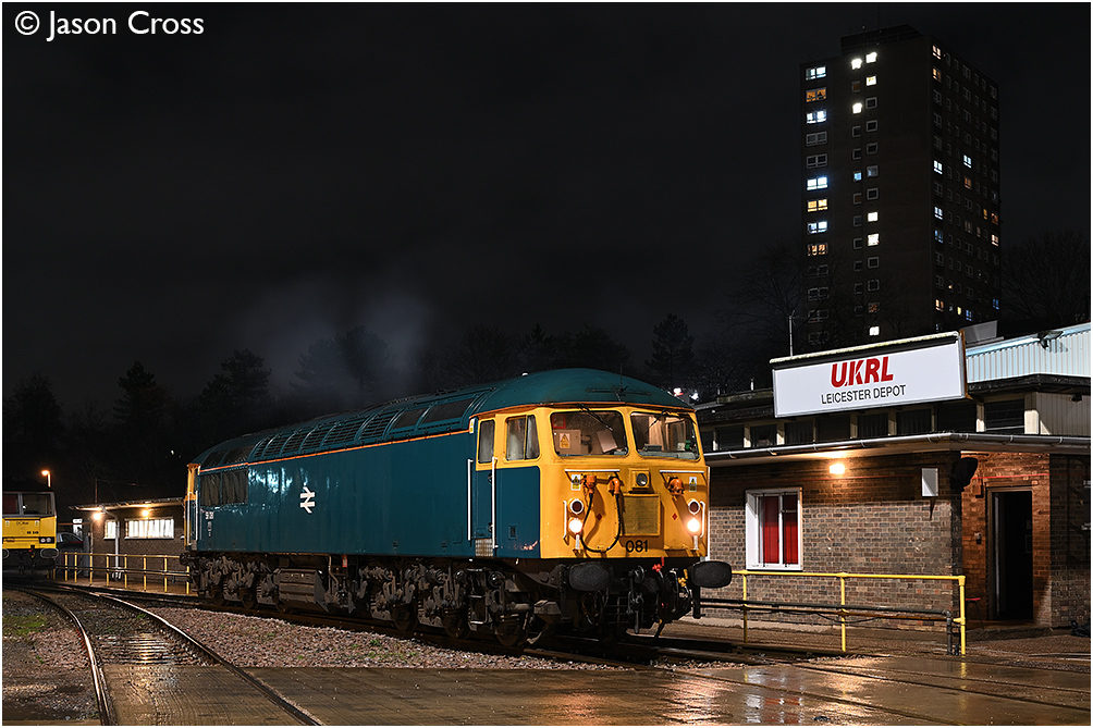 56081 stands outside UK Rail's Leicester Depot. Private photo shoot organised by UKRL, Network Rail and GB Railfreight. Date: 2 January 2024 Manipulation Notes: None
