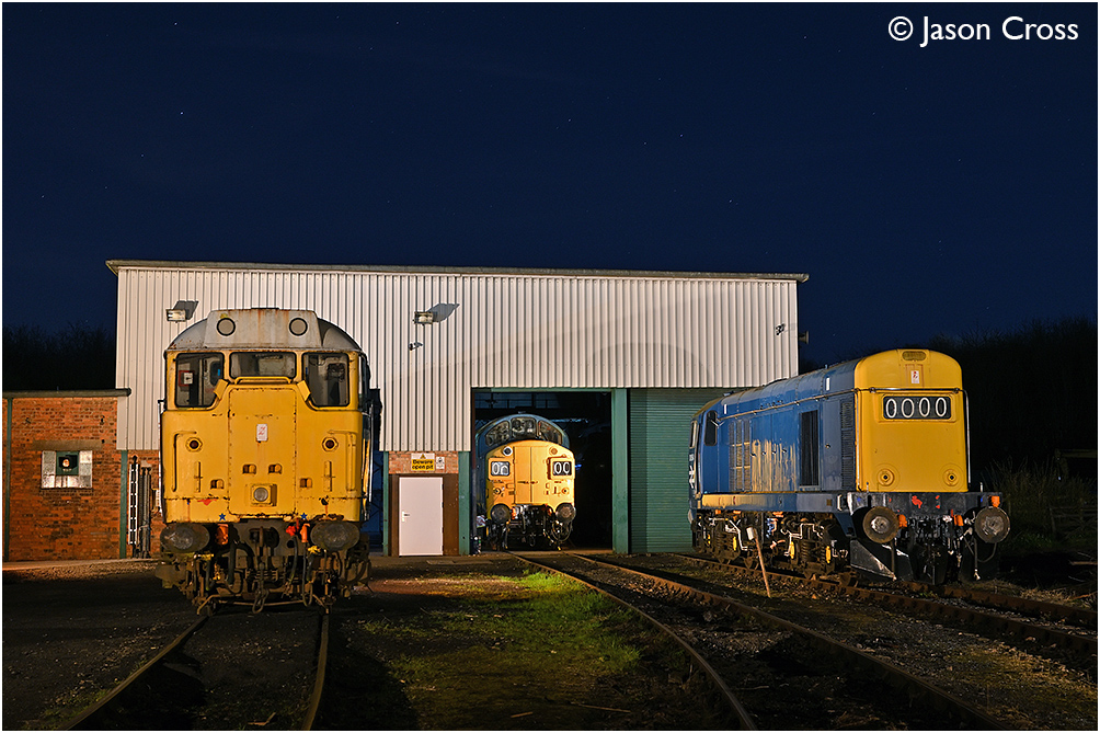 31235, 37009 and D8154 on shed at Ruddington, Great Central Railway (Nottingham). (Midlands Diesel photo charter) Date: 30 March 2024 Manipulation Notes: None