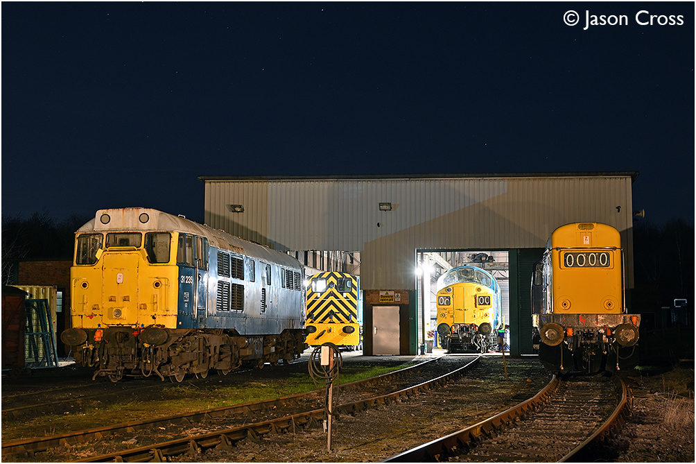 31235, 03118 37009 and D8154 on shed at Ruddington, Great Central Railway (Nottingham). (Midlands Diesel photo charter) Date: 30 March 2024 Manipulation Notes: None