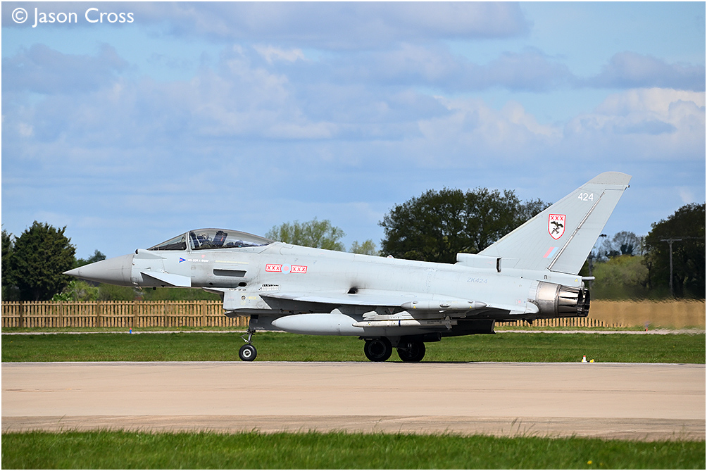 Royal Air Force Eurofighter Typhoon FGR4 ZK424 (with 29 Squadron markings) ready for departure at RAF Coningsby. Date: 17 April 2024 Manipulation Notes: None