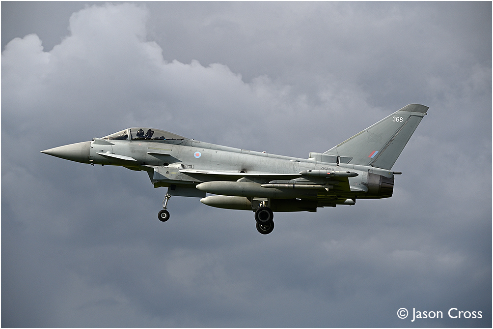 Royal Air Force Eurofighter Typhoon FGR4 ZK368 on approach to runway 25 at RAF Coningsby. Date: 17 April 2024 Manipulation Notes: None