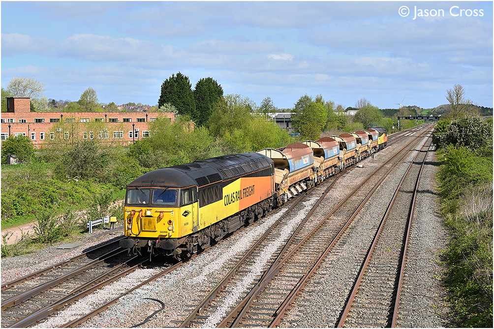 56096 and 56090 pass Trowell Junction with a 6C80 0805 Aldwarke Junction to Toton North Yard. Date: 21 April 2024 Manipulation Notes: None